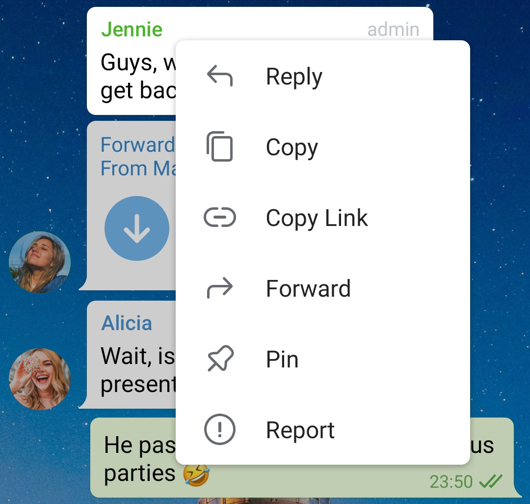 If you'd rather point to a particular spot in a conversation, you can now copy links to messages in private groups and channels – just like you could with public messages. Needless to say, links to private chats will only work for members of their respective communities.