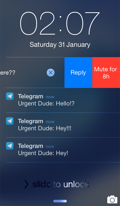 You can now temporarily mute notifications from particular contacts and groups for 1 hour, 8 hours or 2 days. On Android, open the ‘…’ menu in a chat and choose ‘Mute notifications’. On iOS, go to group or contact info and tap on Notifications. iOS8 users can now also use interactive notifications to mute a contact or group for 8 hours.
