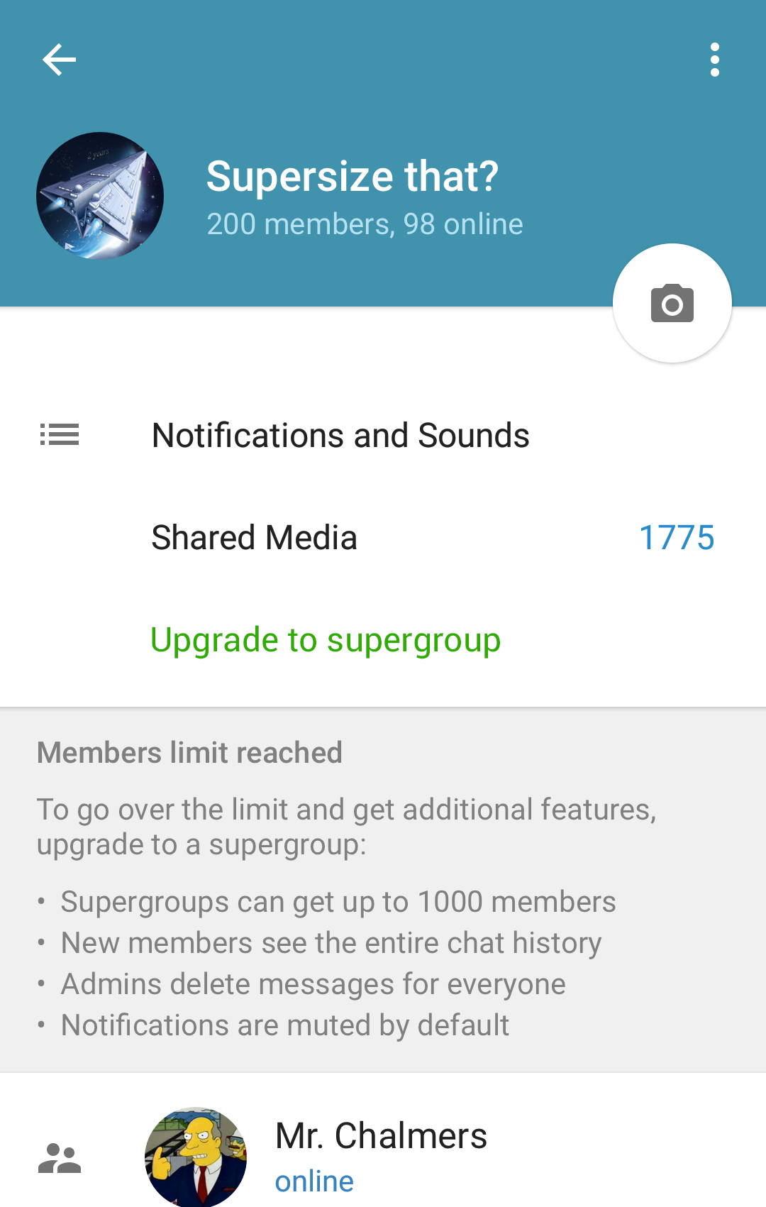 Ever since our launch in 2013, our users have been telling us they would like to migrate even larger communities to Telegram. As of today, once your group is full, you can upgrade it to a supergroup that supports up to 5000 members.