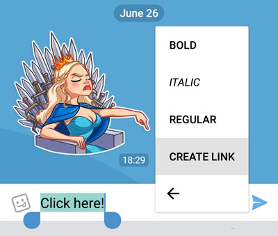 Use the “create link” option in the formatting menu to make text URLs: